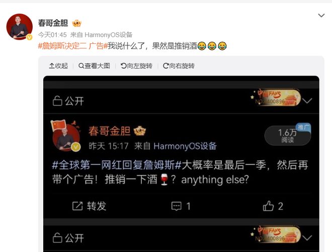 【諸多媒體、大V、名嘴都在等待勒布朗這個決定二,因為今夏他沒有跟湖人達(dá)成續(xù)約,不少人預(yù)測勒布朗可能是要決定明夏退役開啟退役巡演,這導(dǎo)致湖人常規(guī)賽最后一場的球票從85美元上漲到400多美元,結(jié)果勒布朗決定二只是個廣告,這誰受得了】