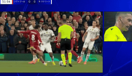 第32分鐘,索博斯洛伊禁區(qū)外勁射,擊中楚阿梅尼的手,利物浦眾將索要點球,但裁判觀看VAR之后認為是球打手,并未判罰點球。