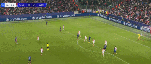 第67分鐘,布拉格斯拉維亞門將出擊失誤,梅里諾頭球破門完成雙響,幫助阿森納3-0鎖定勝局。